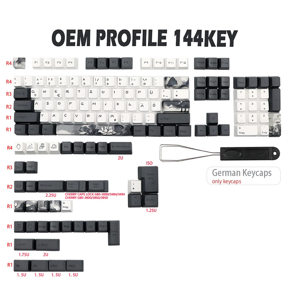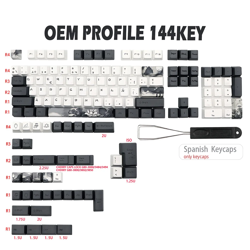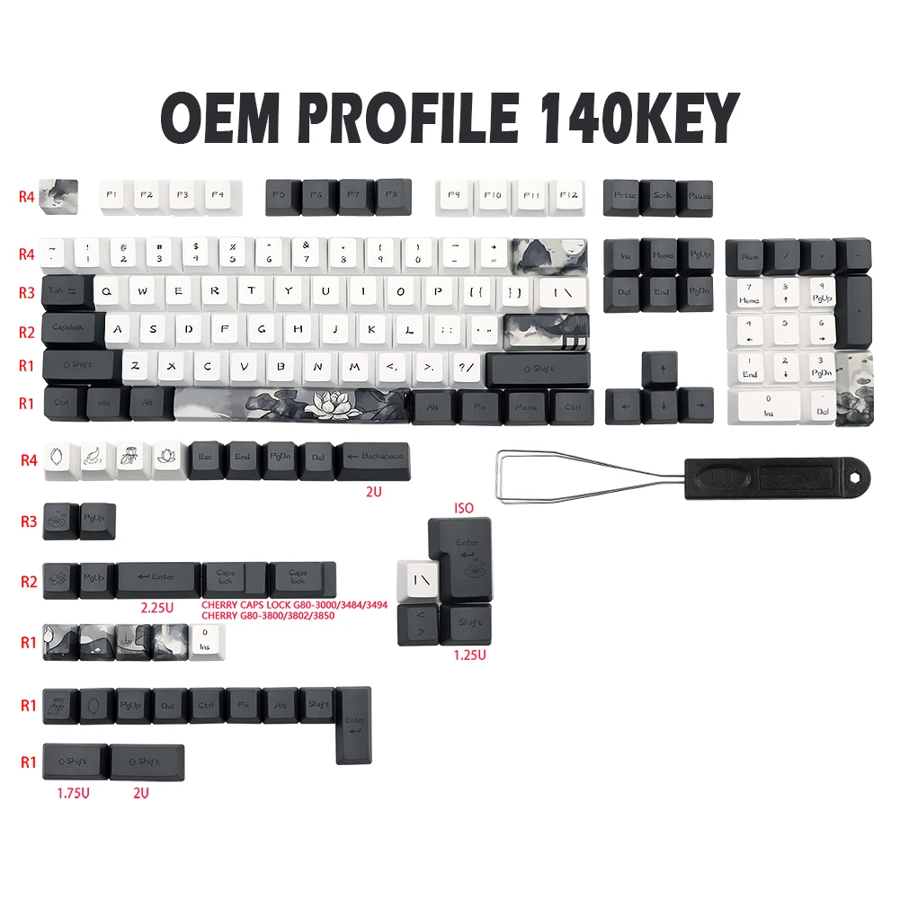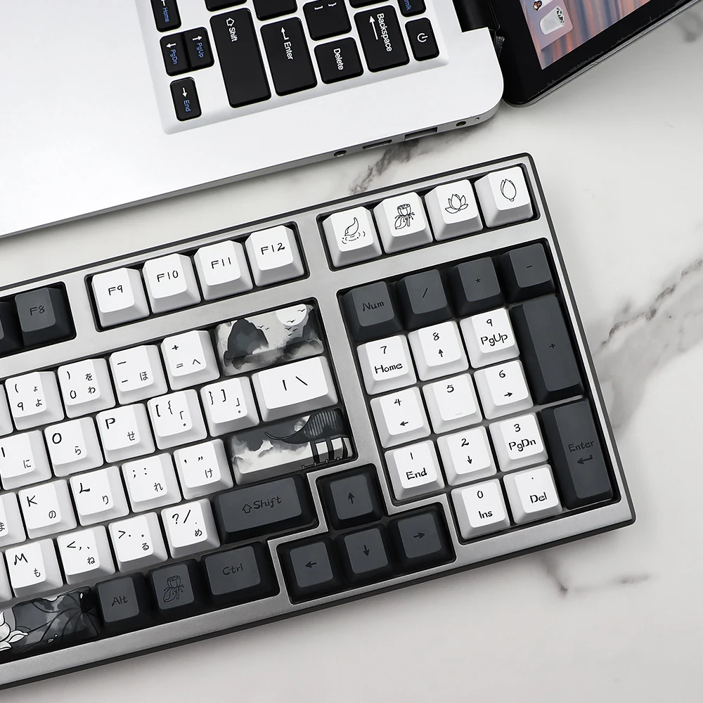 【Wide Compatibility of Keycaps】 This set of Ink Lotus keycaps is suitable for most keyboards on the market, such as 61/68/87/96/98/104/108 6.25u Space bar Cherry MX Mechanical Gaming Keyboard, and keyboard switches with cross-shaped switches.